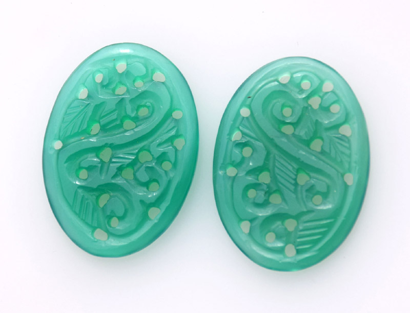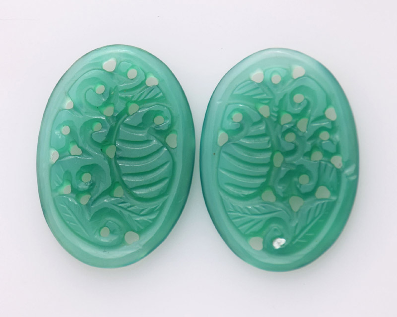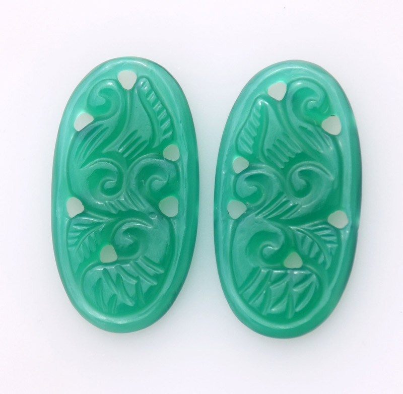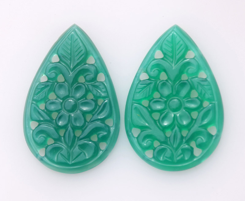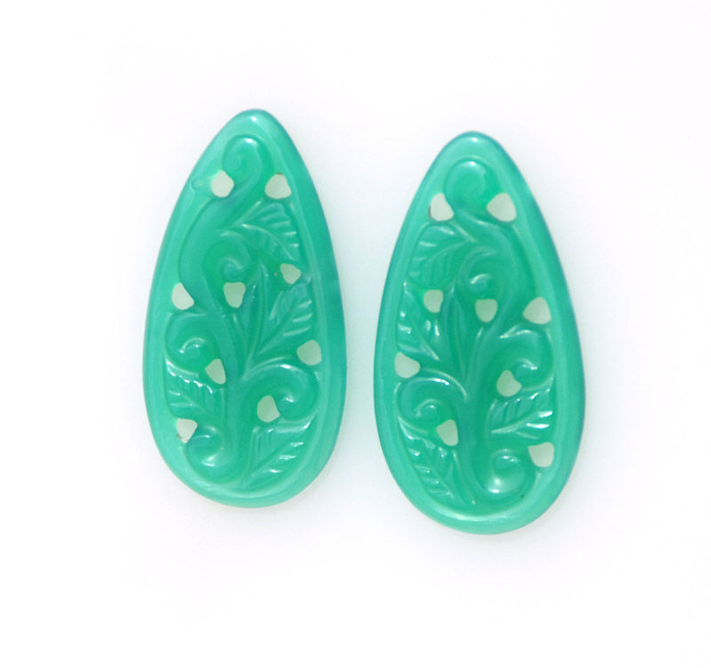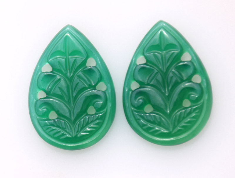 Carving Green Onyx 26.35ct 14x22mm 28$ pair